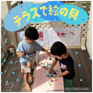 大きな模造紙にも絵の具やスポンジスタンプで絵を描きました。