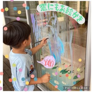 画用紙にも収まらず、窓にもダイナミックにお絵かき!!