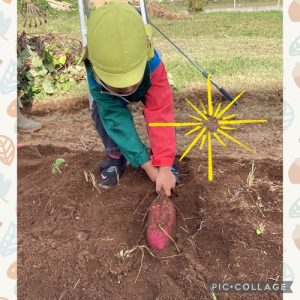 保育園に帰ってくると、真っ黒な手で「大きいおいも取れたよ!!」と嬉しそうに報告してくれました🥰