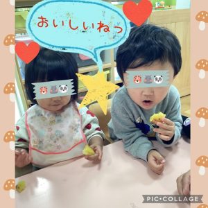 お昼寝中に焼いてもらった焼き芋を、みんなでおやつに頂きました。
