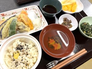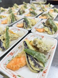 天ぷらは秋鮭、舞茸、かぼちゃ、なす、ピーマンです!