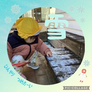 雪が降った翌日は、戸外に残った雪に触れて楽しみました⛄